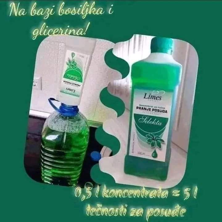 ????Limes koncentrat za posudje pre svega je ekonomičan,štedi novac jer od pola litre se napravi 4,5 do 5l tečnosti